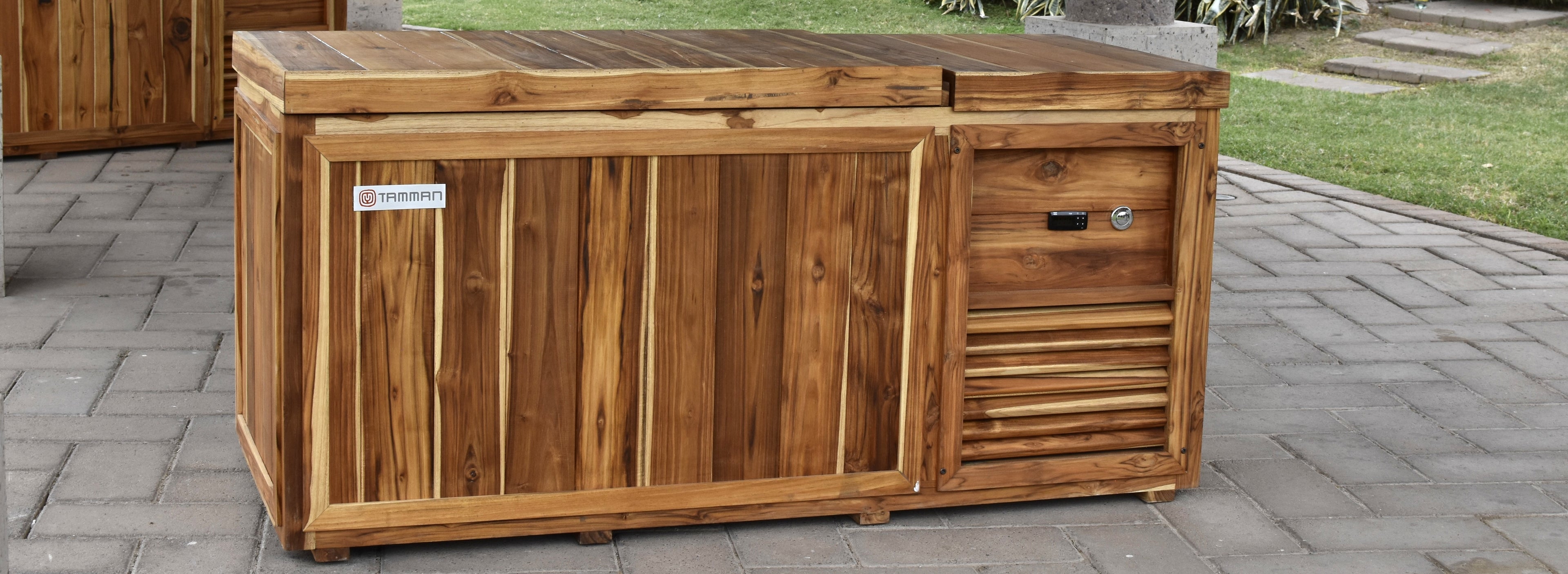Duradera, elegante y resistente al agua, la madera de teca añade un acabado natural y premium que aporta calidez y distinción, haciendo de Tamman 1.0 una pieza única perfecta para interiores o exteriores.